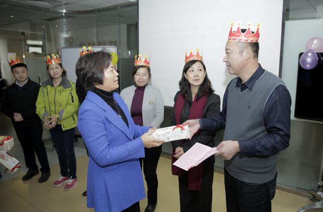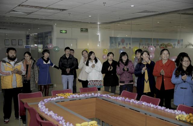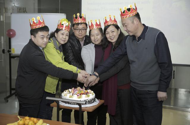 本次生日會集中為十月、十一月份生日的北京總部員工舉辦。上午十點十五分,公司總部員工齊聚多功能會議廳,郭美玲董事長專程趕回公司為本次生日會的員工慶生。