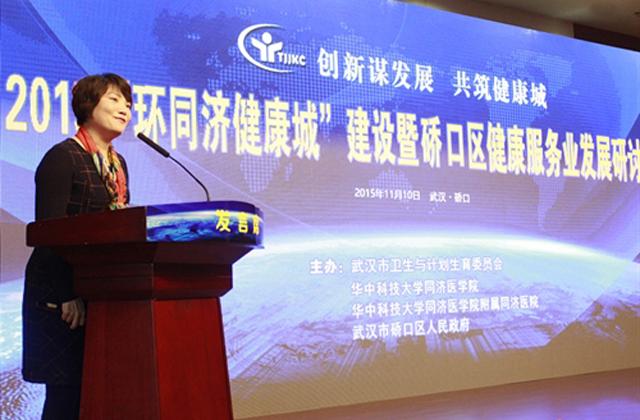 2015年11月10日,為探討發(fā)展健康服務(wù)業(yè)趨勢(shì),探索健康服務(wù)業(yè)發(fā)展新模式,武漢市衛(wèi)生和計(jì)劃生育委員會(huì)、華中科技大學(xué)同濟(jì)醫(yī)學(xué)院、同濟(jì)醫(yī)院、美年大健康、遠(yuǎn)大制藥,邁瑞醫(yī)療,人福醫(yī)藥等跨國(guó)企業(yè)丶國(guó)內(nèi)知名上市公司丶互聯(lián)網(wǎng)醫(yī)療的業(yè)內(nèi)精英齊聚一堂,共同探討 “環(huán)同濟(jì)健康城” 的建設(shè)及硚口區(qū)健康服務(wù)業(yè)的發(fā)展。