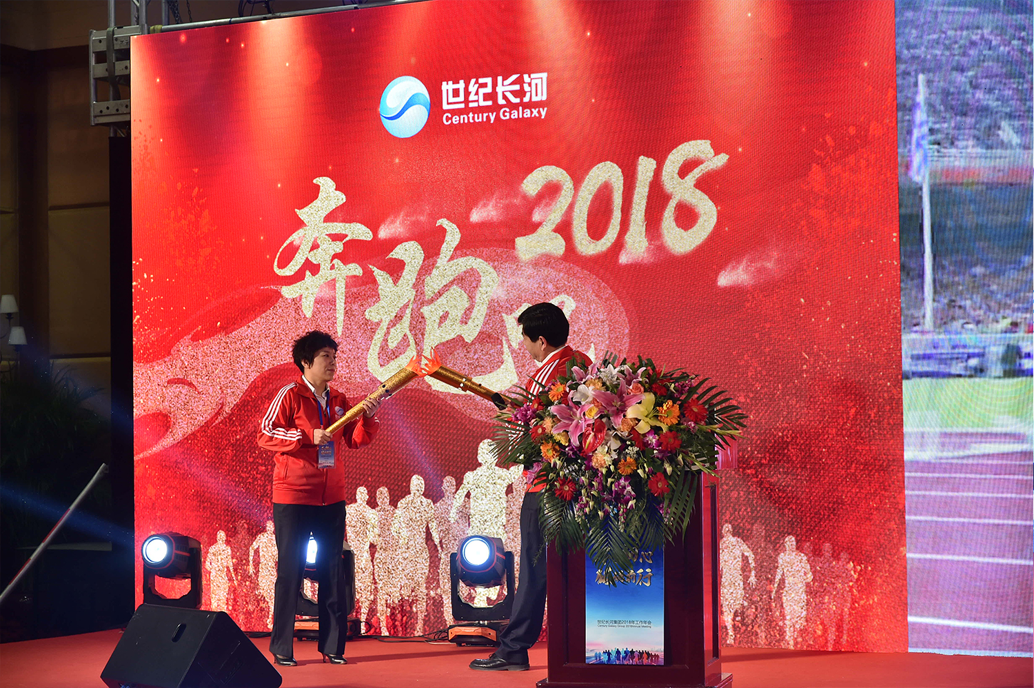 年會上,世紀長河人把象征著夢想與希望,拼搏與奮進的火炬傳遞。火炬傳遞標志著世紀長河起將開始更加突飛猛進的發展,而這生生不息的圣火精神也將通過每位家人的努力繼續傳承。