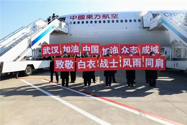 東航機組成員向美年援鄂醫療隊致敬